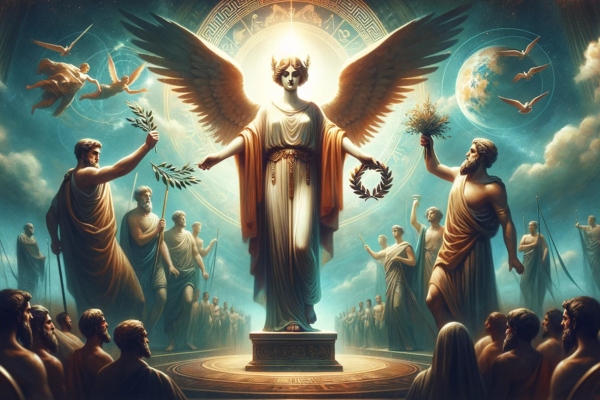 In Greek mythology, the Goddess of Victory is endowed with important powers beyond her primary domain of victory.